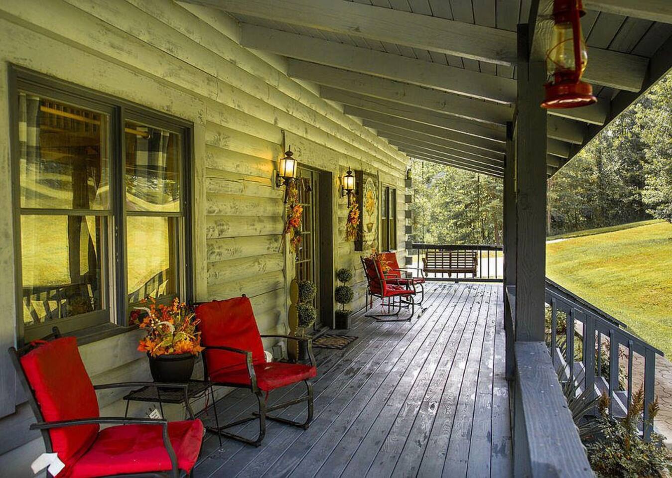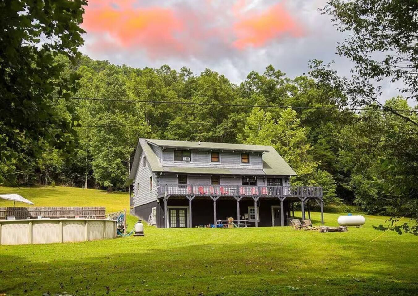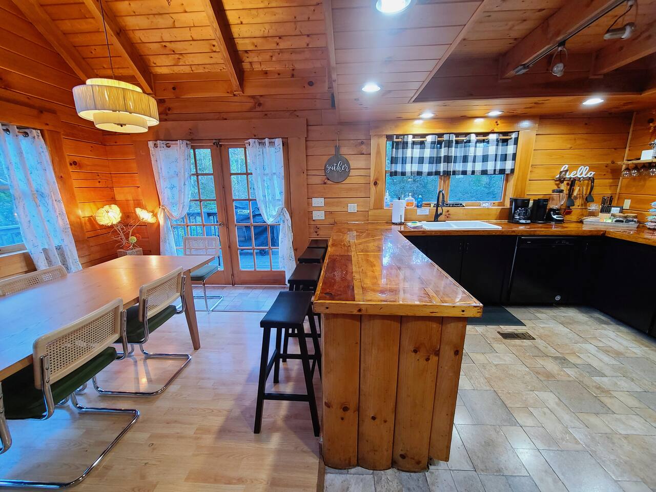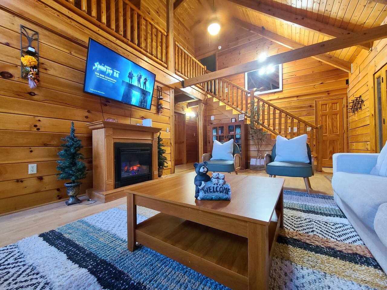 Sunlight spills across rich wood interiors, the scent of pine lingers in the air. Whether you’re gathered around the fire pit under a blanket of stars or soaking in the hot tub after a day of adventure, The Grey House is made for moments you’ll never forget. This spacious cabin blends rustic charm w/ modern comfort. Bring your four-legged family members along! Spend mornings sipping coffee on the porch, afternoons splashing in the pool, & evenings cooking together in the fully equipped kitchen.