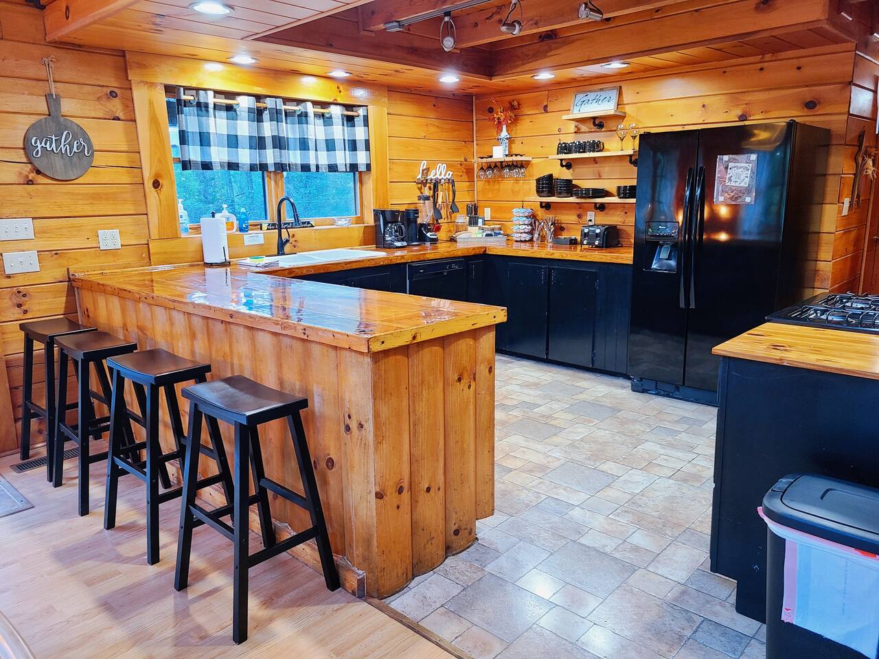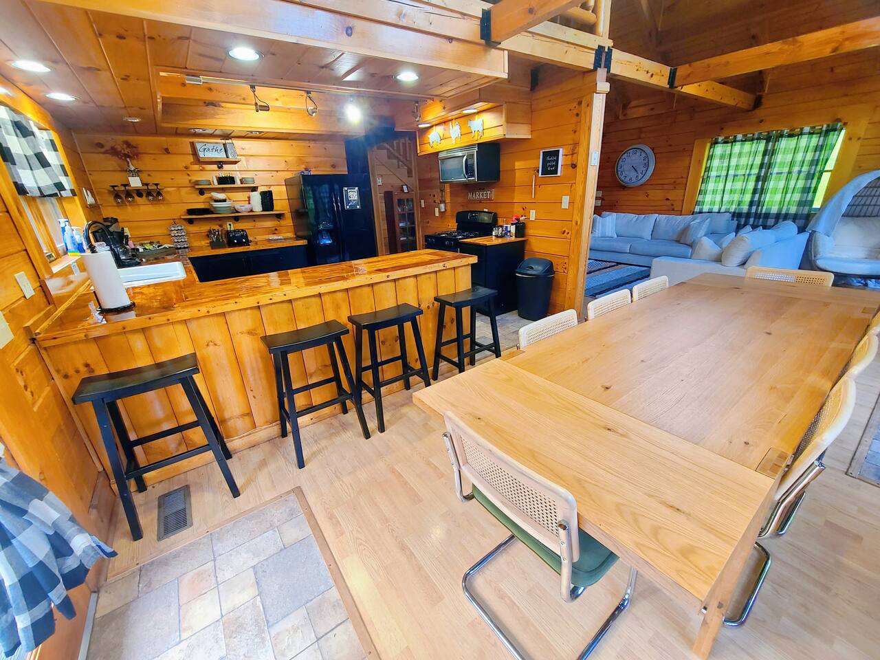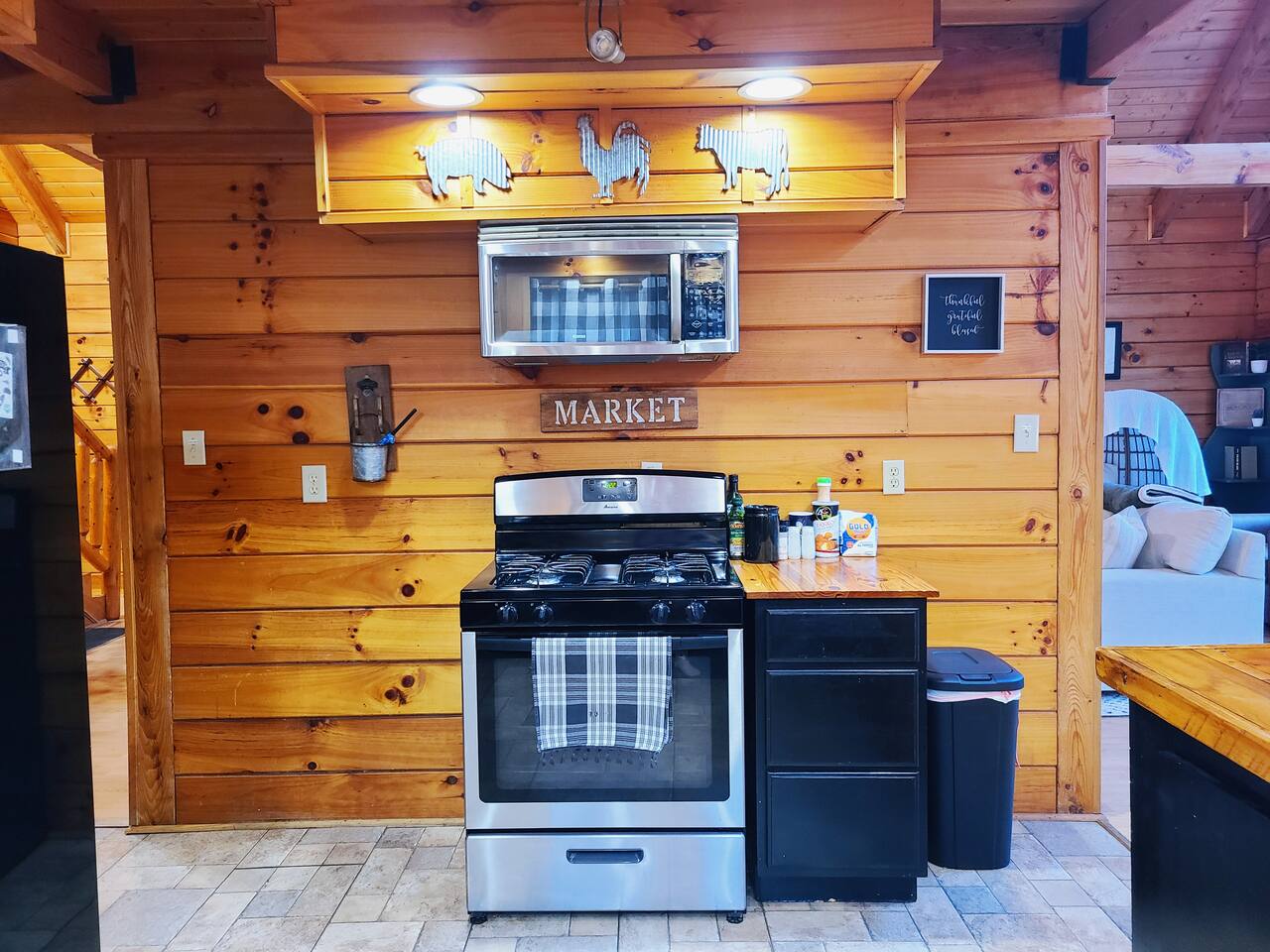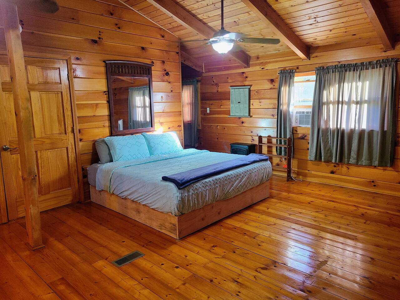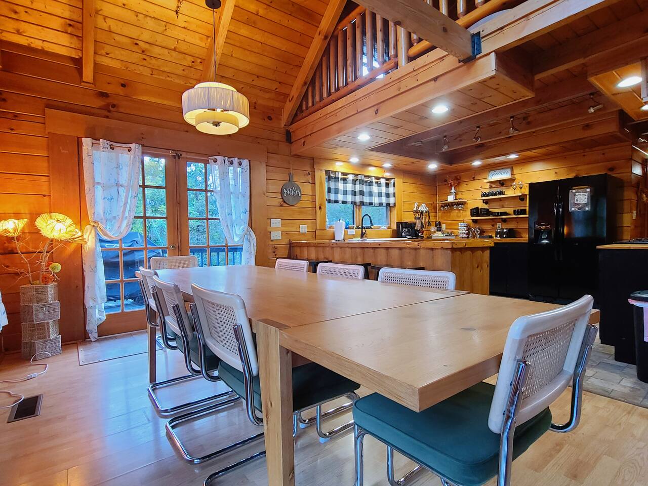 Sunlight spills across rich wood interiors, the scent of pine lingers in the air. Whether you’re gathered around the fire pit under a blanket of stars or soaking in the hot tub after a day of adventure, The Grey House is made for moments you’ll never forget. This spacious cabin blends rustic charm w/ modern comfort. Bring your four-legged family members along! Spend mornings sipping coffee on the porch, afternoons splashing in the pool, & evenings cooking together in the fully equipped kitchen.