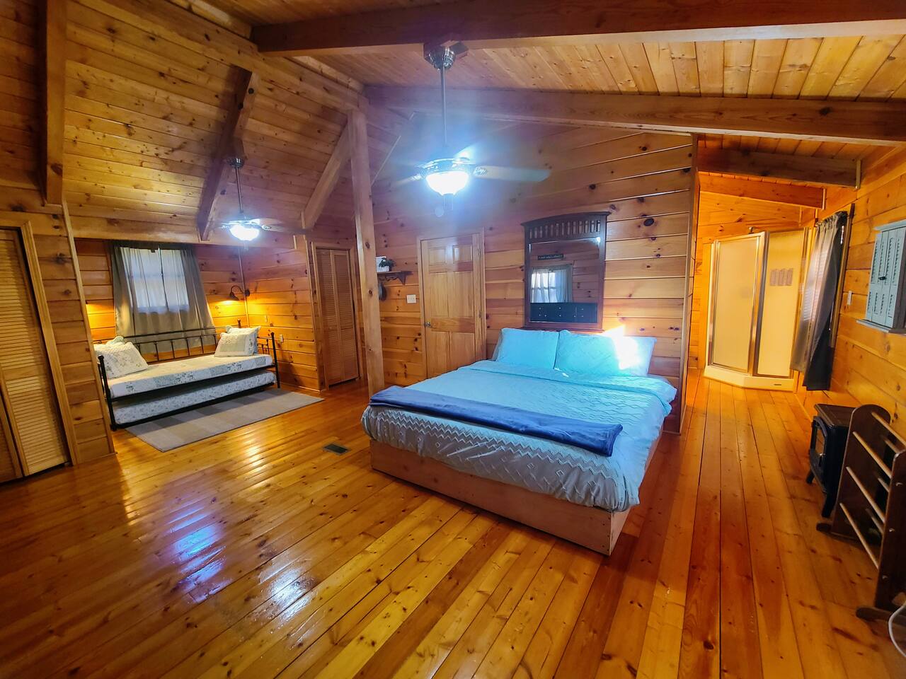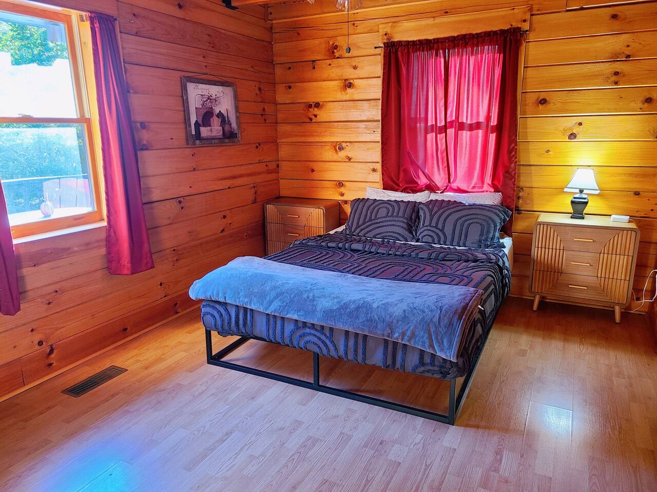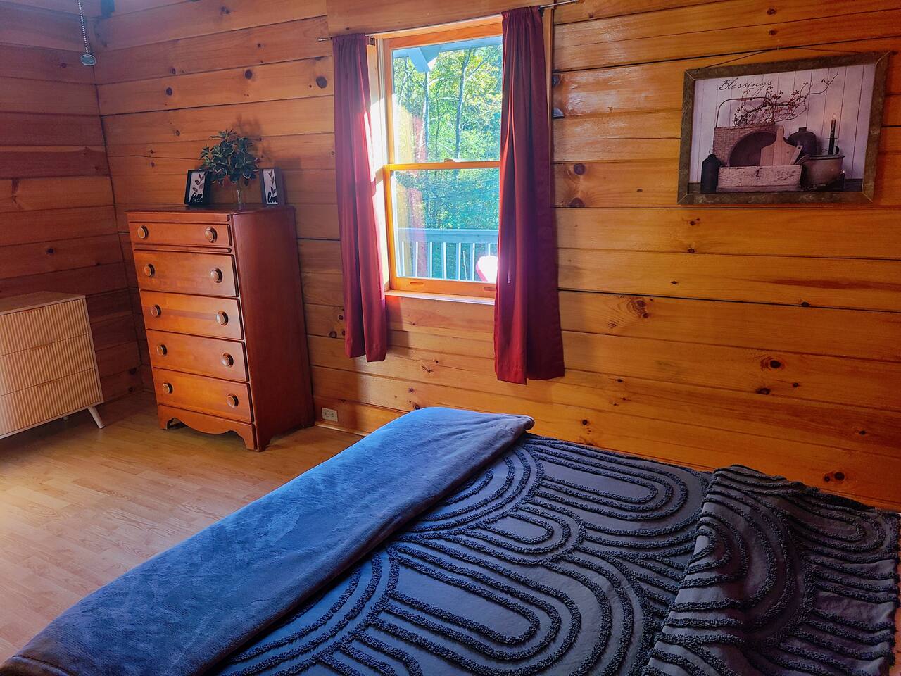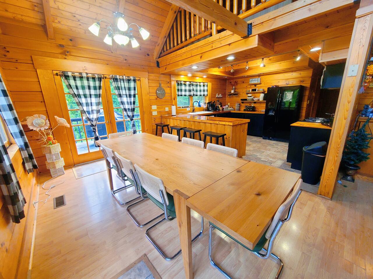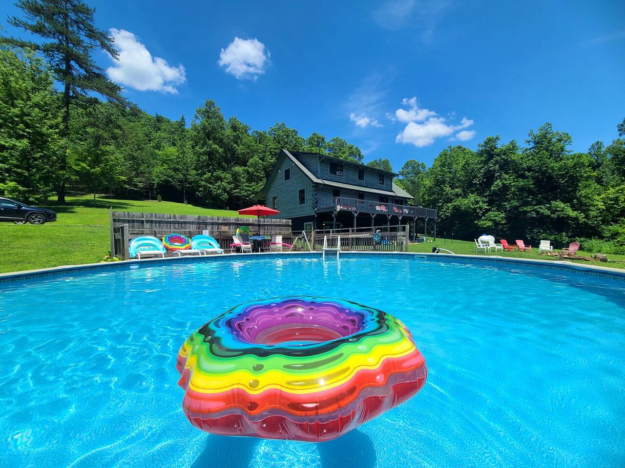 Sunlight spills across rich wood interiors, the scent of pine lingers in the air. Whether you’re gathered around the fire pit under a blanket of stars or soaking in the hot tub after a day of adventure, The Grey House is made for moments you’ll never forget. This spacious cabin blends rustic charm w/ modern comfort. Bring your four-legged family members along! Spend mornings sipping coffee on the porch, afternoons splashing in the pool, & evenings cooking together in the fully equipped kitchen.