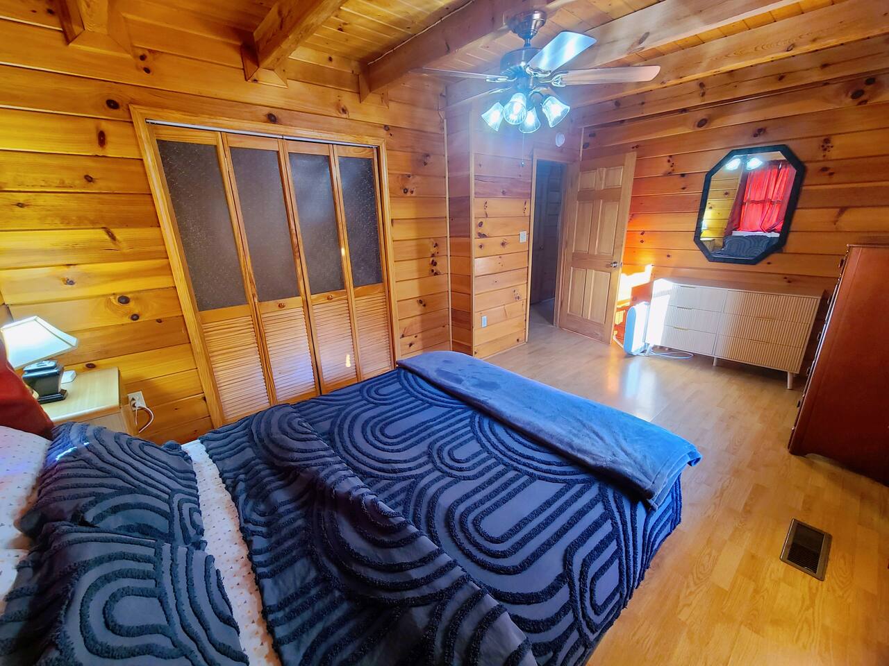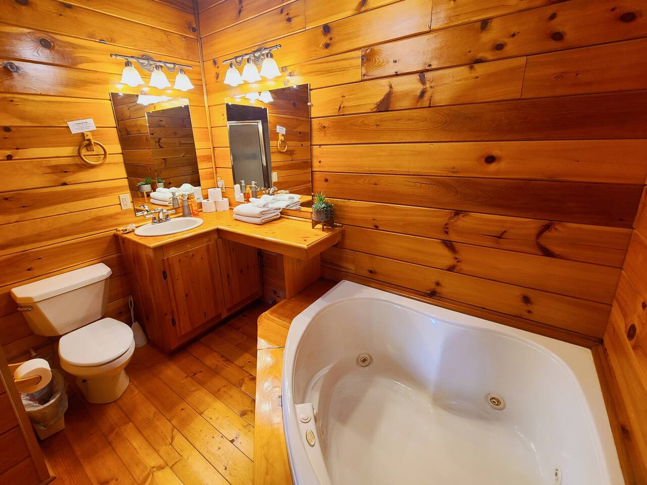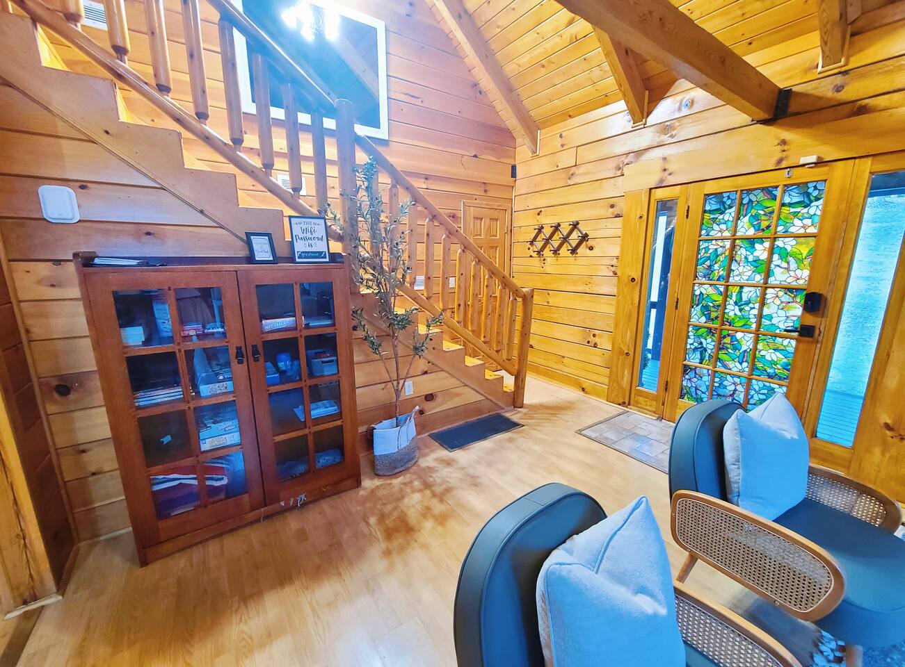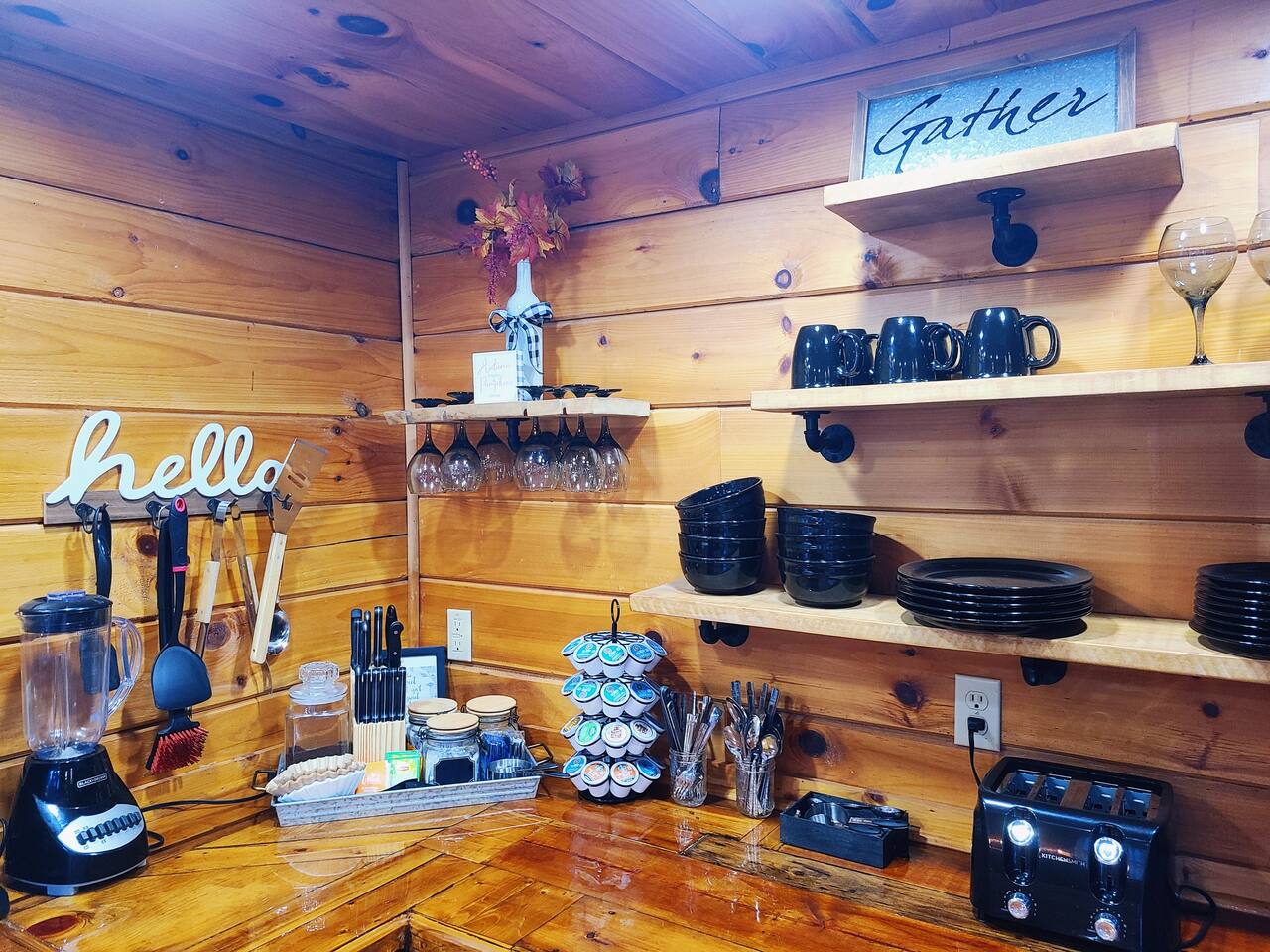 Sunlight spills across rich wood interiors, the scent of pine lingers in the air. Whether you’re gathered around the fire pit under a blanket of stars or soaking in the hot tub after a day of adventure, The Grey House is made for moments you’ll never forget. This spacious cabin blends rustic charm w/ modern comfort. Bring your four-legged family members along! Spend mornings sipping coffee on the porch, afternoons splashing in the pool, & evenings cooking together in the fully equipped kitchen.