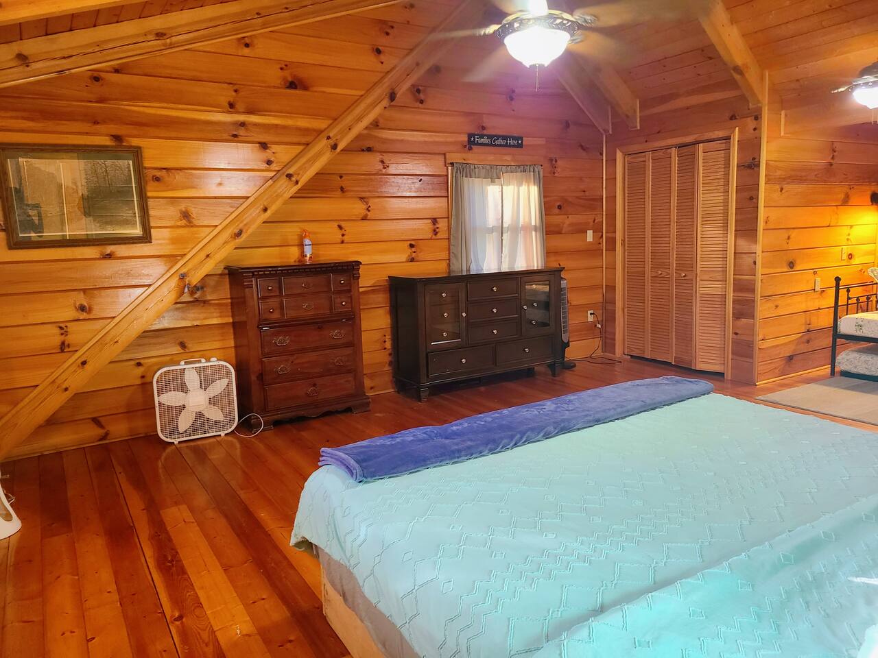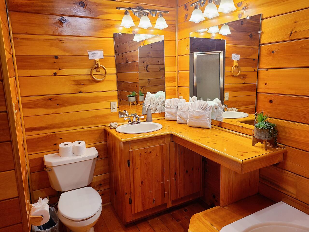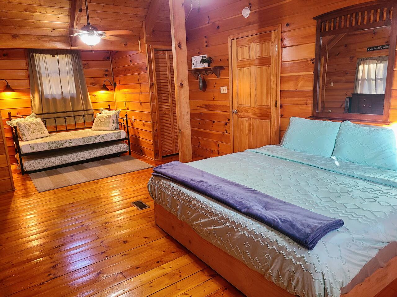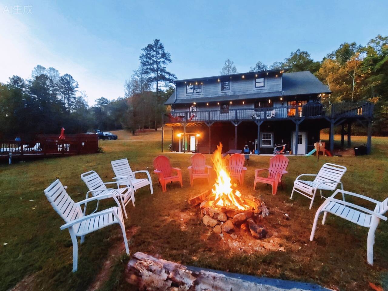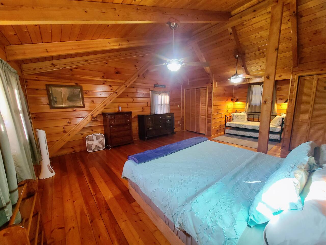 Sunlight spills across rich wood interiors, the scent of pine lingers in the air. Whether you’re gathered around the fire pit under a blanket of stars or soaking in the hot tub after a day of adventure, The Grey House is made for moments you’ll never forget. This spacious cabin blends rustic charm w/ modern comfort. Bring your four-legged family members along! Spend mornings sipping coffee on the porch, afternoons splashing in the pool, & evenings cooking together in the fully equipped kitchen.